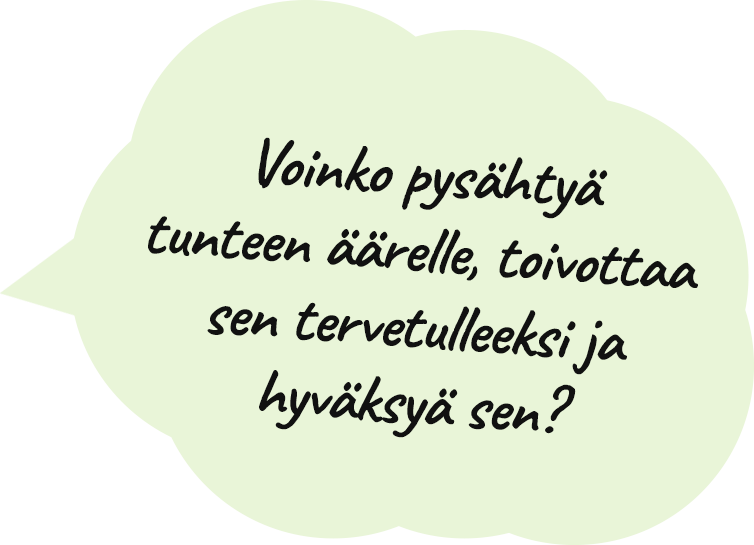 - Hyväksy tunne ja sen herättämät tuntemukset sellaisena kuin ne ovat tällä hetkellä.