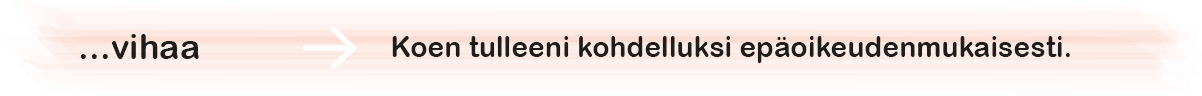Jos jäämme jumiin epämiellyttävään tunteeseen, esimerkiksi kokiessamme tulleemme kohdelluksi väärin. Tunteesta kiinni pitäminen vie vain omia voimavarojasi. Et voi muuttaa toisen toimintaa, jokainen voi tehdä sen vain itse. Voit tuoda asian esiin ja työstää tunnettasi edellä käytyjen taitojen avulla.